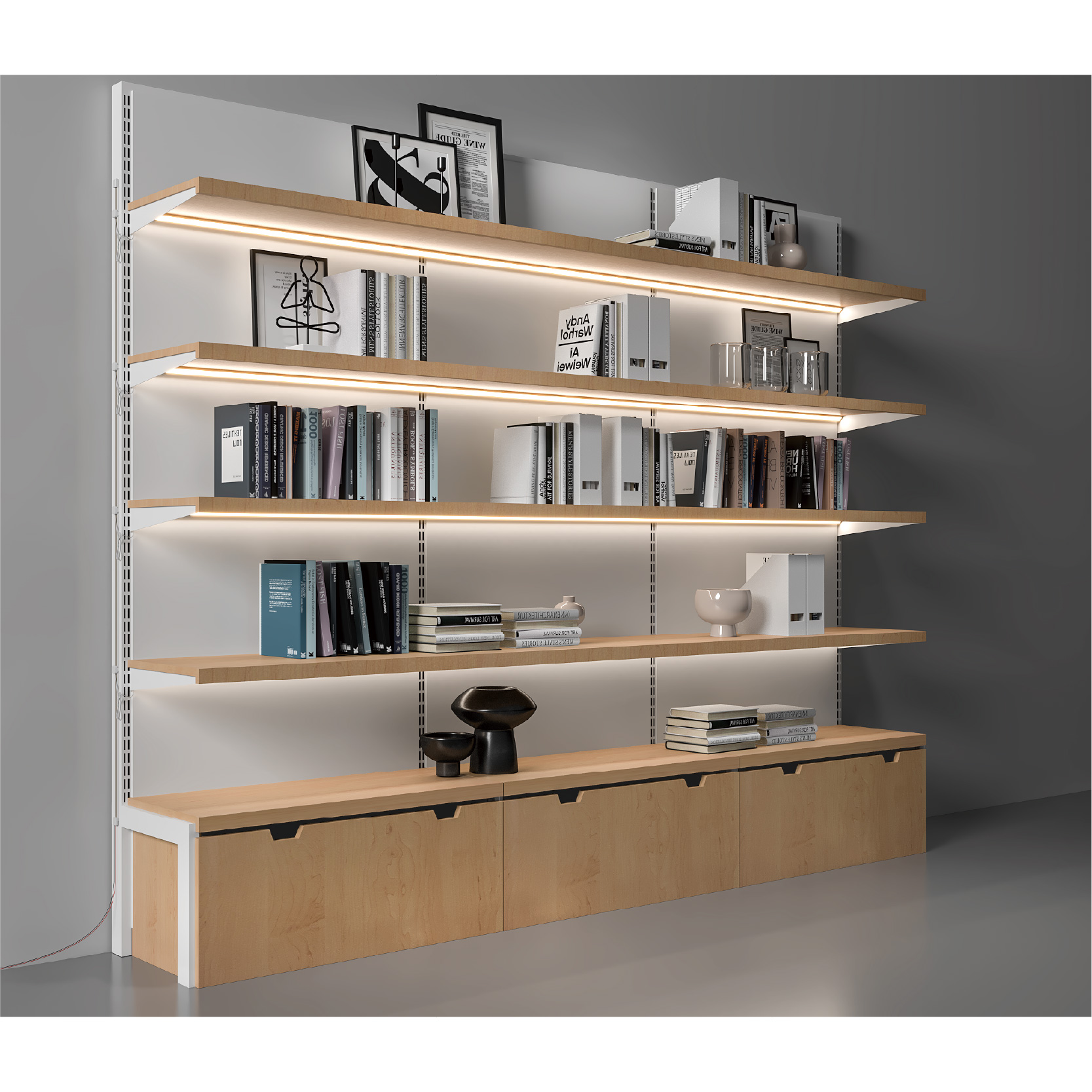 Dc power track series deliver power to fixtures via sliding power sliders along the track, offering convenient installation and high flexibility. Compatible with the Welding Free Series, fixtures can be freely moved and repositioned along the track. The number of fixtures can be easily increased or decreased as needed, allowing lighting configurations to be adjusted at any time to suit shelf layouts and product displays.