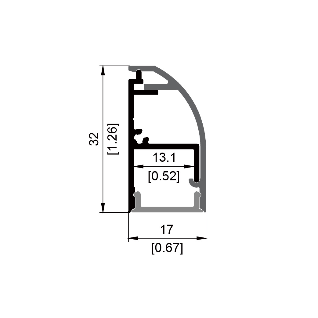 High quality anodized aluminium wall profile;With integrated cable duct;Ideally suited for indirect lighting without anexisting cove on site;Light emission either upwards, downwards or sideways (e.g. at edges) possible;