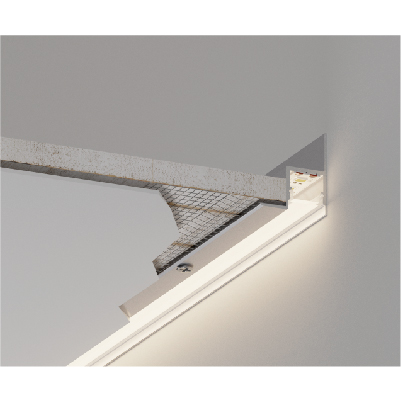 Wall edge aluminum channel for single and double-layer gypsum ceilings.Made from high-quality anodized aluminum profiles, this product offers high strength, lightweight construction, corrosion resistance, and excellent thermal dissipation. By incorporating aprecisely designed gap, it creates asoft shadow effect, enhancing the visual perception of afloating and weightless ceiling.When paired with LED light strips, it delivers uniform wall-washing illumination without glare or hotspots, serving both edge finishing and optical control functions. Applied to modern minimalist ceilings, indirect lighting systems, and commercial space lighting.