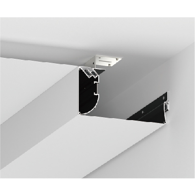 Stretch ceiling connection aluminum channel. Constructed from premium anodized aluminum profiles, it offers high strength, lightweight properties, corrosion resistance, and excellent heat dissipation. The unique structural design connects flexible stretch film at both ends. By combining various flex profile, it enables infinite possibilities from simple planes to complex curved surfaces. It provides uniform tension to keep the flexible membrane flat and taut. Beyond merely integrating with the space, it creates a comfortable, sophisticated, and expressive visual environment. Primarily used in studios, brand boutiques, offices, and similar settings.