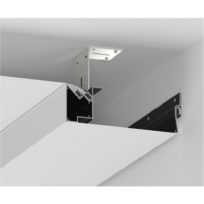 Stretch ceiling connection aluminum channel. Constructed from premium anodized aluminum profiles, it offers high strength, lightweight properties, corrosion resistance, and excellent heat dissipation. The unique structural design connects flexible stretch film at both ends. By combining various flex profile, it enables infinite possibilities from simple planes to complex curved surfaces. It provides uniform tension to keep the flexible membrane flat and taut. Beyond merely integrating with the space, it creates a comfortable, sophisticated, and expressive visual environment. Primarily used in studios, brand boutiques, offices, and similar settings.