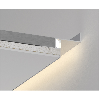 Wall edge aluminum channel for single and double-layer gypsum ceilings.Made from high-quality anodized aluminum profiles, this product offers high strength, lightweight construction, corrosion resistance, and excellent thermal dissipation. By incorporating aprecisely designed gap, it creates asoft shadow effect, enhancing the visual perception of afloating and weightless ceiling.When paired with LED light strips, it delivers uniform wall-washing illumination without glare or hotspots, serving both edge finishing and optical control functions. Applied to modern minimalist ceilings, indirect lighting systems, and commercial space lighting.