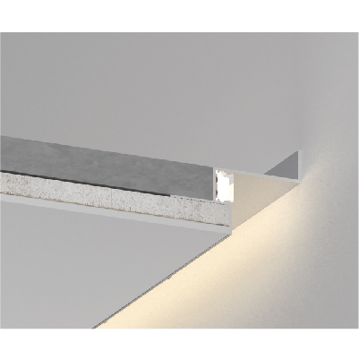 Wall edge aluminum channel for single and double-layer gypsum ceilings.Made from high-quality anodized aluminum profiles, this product offers high strength, lightweight construction, corrosion resistance, and excellent thermal dissipation. By incorporating aprecisely designed gap, it creates asoft shadow effect, enhancing the visual perception of afloating and weightless ceiling.When paired with LED light strips, it delivers uniform wall-washing illumination without glare or hotspots, serving both edge finishing and optical control functions. Applied to modern minimalist ceilings, indirect lighting systems, and commercial space lighting.