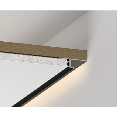 Wall edge aluminum channel for single and double-layer gypsum ceilings.Made from high-quality anodized aluminum profiles, this product offers high strength, lightweight construction, corrosion resistance, and excellent thermal dissipation. By incorporating aprecisely designed gap, it creates asoft shadow effect, enhancing the visual perception of afloating and weightless ceiling.When paired with LED light strips, it delivers uniform wall-washing illumination without glare or hotspots, serving both edge finishing and optical control functions. Applied to modern minimalist ceilings, indirect lighting systems, and commercial space lighting.