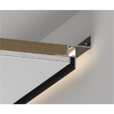 Wall edge aluminum channel for single and double-layer gypsum ceilings.Made from high-quality anodized aluminum profiles, this product offers high strength, lightweight construction, corrosion resistance, and excellent thermal dissipation. By incorporating aprecisely designed gap, it creates asoft shadow effect, enhancing the visual perception of afloating and weightless ceiling.When paired with LED light strips, it delivers uniform wall-washing illumination without glare or hotspots, serving both edge finishing and optical control functions. Applied to modern minimalist ceilings, indirect lighting systems, and commercial space lighting.